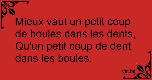Mieux vaut un petit coup de boules dans les dents, Qu'un petit coup de dent dans les boules.