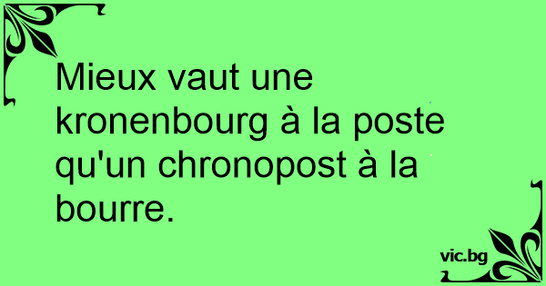 Mieux vaut une kronenbourg à la poste qu'un chronopost à la bourre.