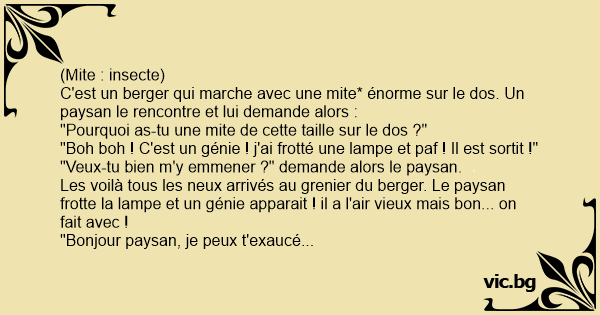 C'est un berger qui marche avec une mite* énorme sur le dos. Un paysan le rencontre et lui demande alors :