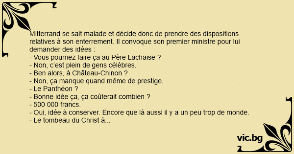 Mitterrand se sait malade et décide donc de prendre des dispositions relatives à son enterrement. Il convoque son premier ministre pour lui demander des idées :