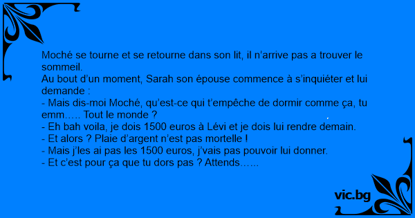 - Mais dis-moi Moché, qu’est-ce qui t’empêche de dormir comme ça, tu emm….. Tout le monde ?