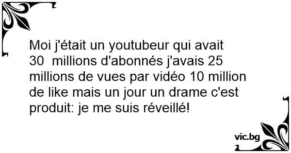 Moi j'était un youtubeur qui avait 30 millions d'abonnés j'avais 25 millions de vues par vidéo 10 million de like mais un jour un drame c'est produit: je me suis réveillé!