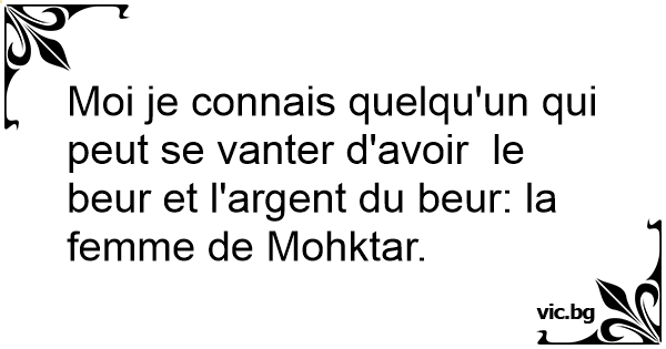 Moi je connais quelqu'un qui peut se vanter d'avoir le beur et l'argent du beur: la femme de Mohktar.