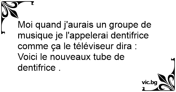 Moi quand j'aurais un groupe de musique je l'appelerai dentifrice comme ça le téléviseur dira :