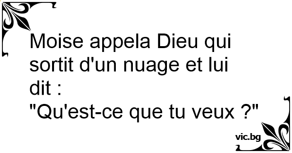 Moise appela Dieu qui sortit d'un nuage et lui dit :