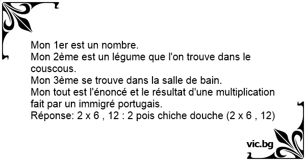 Mon tout est l'énoncé et le résultat d'une multiplication fait par un immigré portugais.