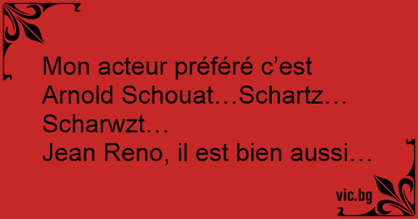 Mon acteur préféré c’est Arnold Schouat…Schartz…Scharwzt…