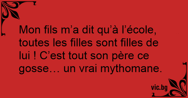 Mon fils m’a dit qu’à l’école, toutes les filles sont filles de lui ! C’est tout son père ce gosse… un vrai mythomane.