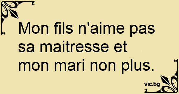 Mon fils n'aime pas sa maitresse et mon mari non plus.