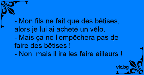 - Mon fils ne fait que des bêtises, alors je lui ai acheté un vélo.