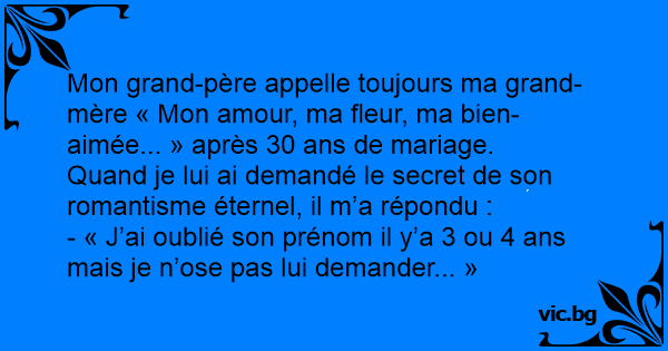 Mon grand-père appelle toujours ma grand-mère « Mon amour, ma fleur, ma bien-aimée... » après 30 ans de mariage.