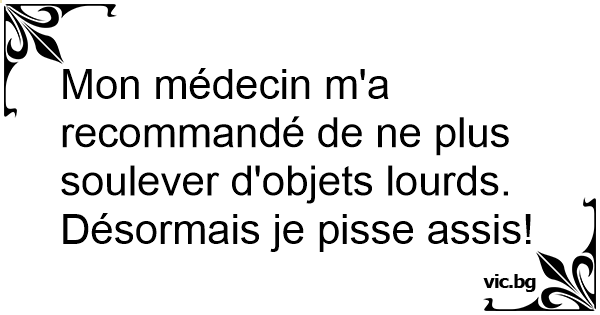 Mon médecin m'a recommandé de ne plus soulever d'objets lourds. Désormais je рissе assis! 1 0 0 Blagues sur les hommes