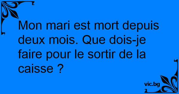Mon mari est mort depuis deux mois. Que dois-je faire pour le sortir de la caisse ?