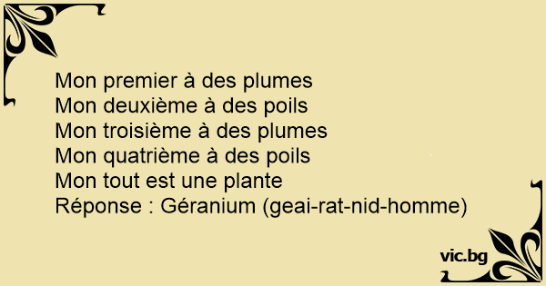 Réponse : Géranium (geai-rat-nid-homme)