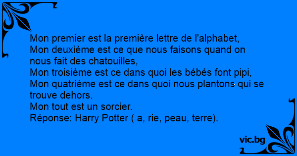 Réponse: Harry Potter ( a, rie, peau, terre).