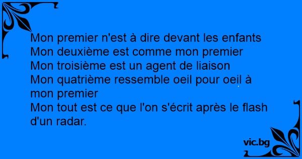 Mon tout est ce que l'on s'écrit après le flash d'un radar.