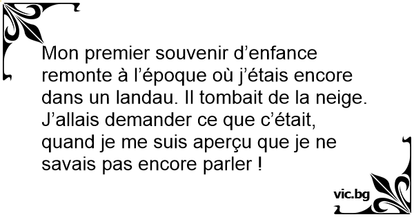Mon premier souvenir d’enfance remonte à l’époque où j’étais encore dans un landau. Il tombait de la neige. J’allais demander ce que c’était, quand je me suis aperçu que je ne savais pas encore parler !
