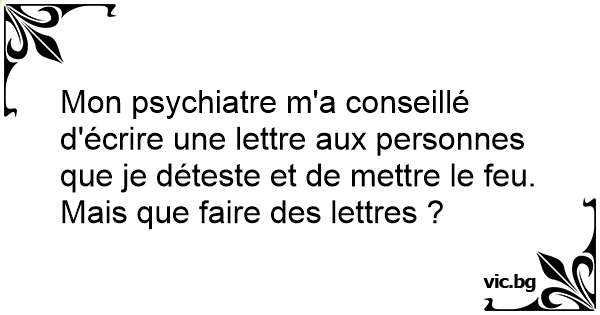 Mon psychiatre m'a conseillé d'écrire une lettre aux personnes que je déteste et de mettre le feu. Mais que faire des lettres ?