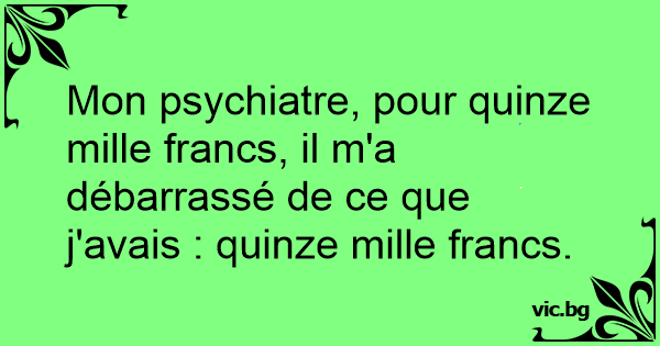 Mon psychiatre, pour quinze mille francs, il m'a débarrassé de ce que j'avais : quinze mille francs.