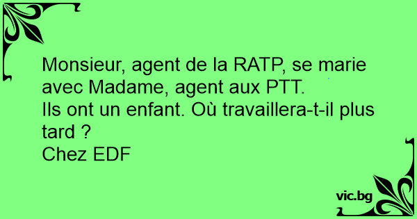 Monsieur, agent de la RATP, se marie avec Madame, agent aux PTT.