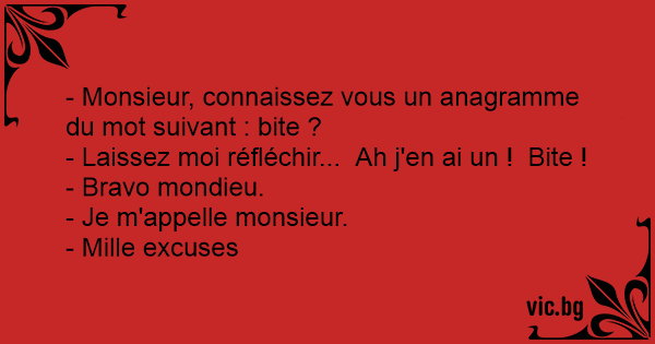 - Monsieur, connaissez vous un anagramme du mot suivant : bite ?