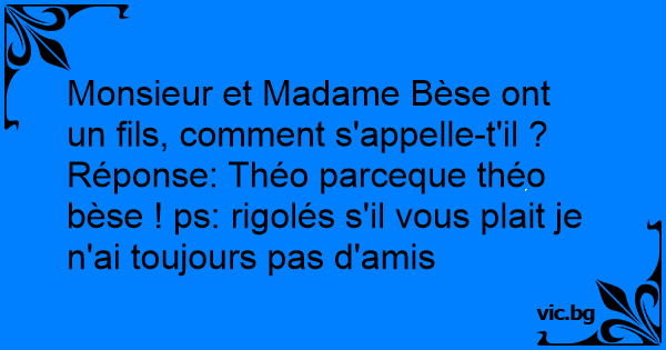 Réponse: Théo parceque théo bèse ! ps: rigolés s'il vous plait je n'ai toujours pas d'amis