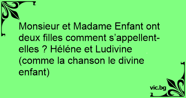 Monsieur et Madame Enfant ont deux filles comment s’appellent-elles ? Héléne et Ludivine (comme la chanson le divine enfant)