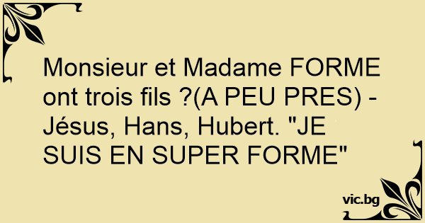 Monsieur et Madame FORME ont trois fils ?(A PEU PRES) -Jésus, Hans, Hubert. "JE SUIS EN SUPER FORME"