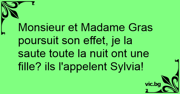 Monsieur et Madame Gras poursuit son effet, je la saute toute la nuit ont une fille? ils l'appelent Sylvia!
