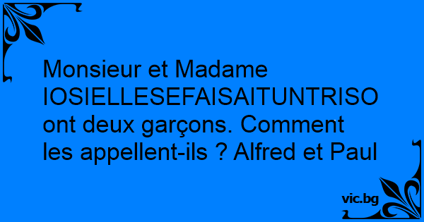 Monsieur et Madame IOSIELLESEFAISAITUNTRISO ont deux garçons. Comment les appellent-ils ? Alfred et Paul