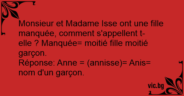Réponse: Anne = (annisse)= Anis= nom d'un garçon.