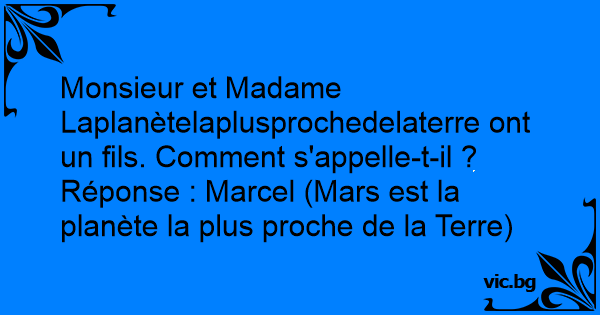 Réponse : Marcel (Mars est la planète la plus proche de la Terre)