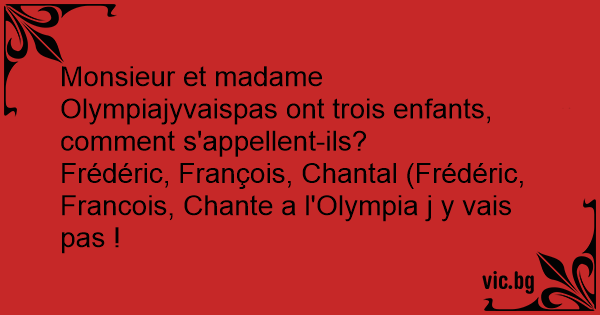 Frédéric, François, Chantal (Frédéric, Francois, Chante a l'Olympia j y vais pas !