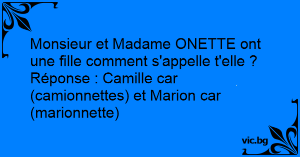 Monsieur et Madame ONETTE ont une fille comment s'appelle t'elle ?