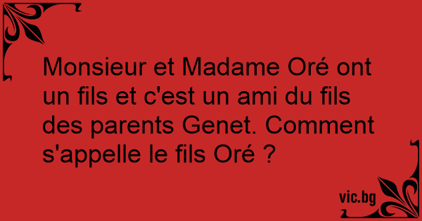 Monsieur et Madame Oré ont un fils et c'est un ami du fils des parents Genet. Comment s'appelle le fils Oré ?