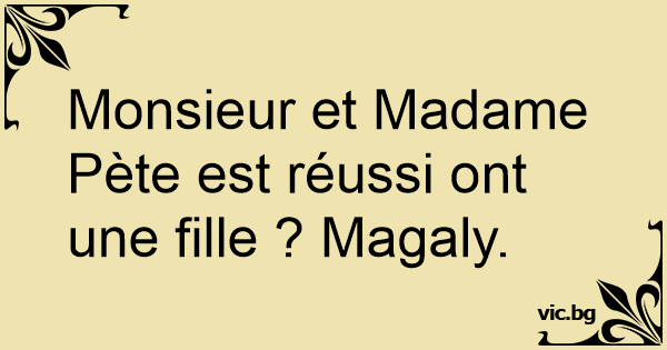 Monsieur et Madame Pète est réussi ont une fille ? Magaly.