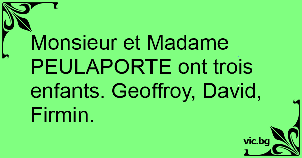 Monsieur et Madame PEULAPORTE ont trois enfants. Geoffroy, David, Firmin.