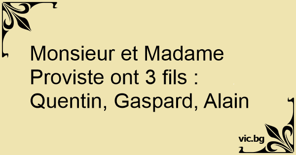Monsieur et Madame Proviste ont 3 fils : Quentin, Gaspard, Alain
