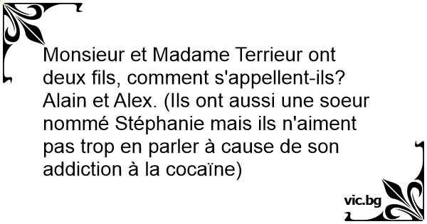 Monsieur et Madame Terrieur ont deux fils, comment s'appellent-ils?