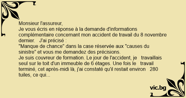 Monsieur l'assureur, Je...