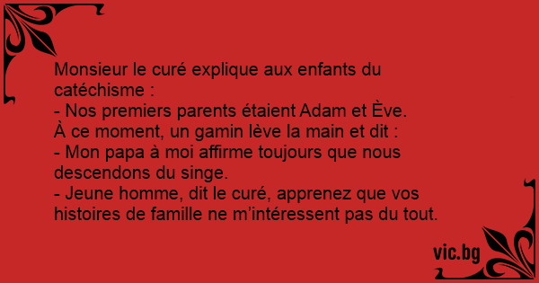 - Jeune homme, dit le curé, apprenez que vos histoires de famille ne m’intéressent pas du tout.