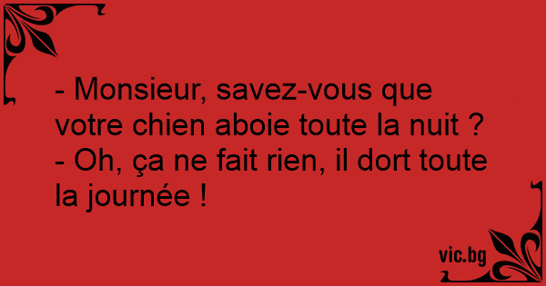 - Monsieur, savez-vous que votre chien aboie toute la nuit ?
