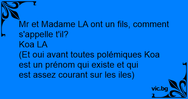 (Et oui avant toutes polémiques Koa est un prénom qui existe et qui est assez courant sur les iles)