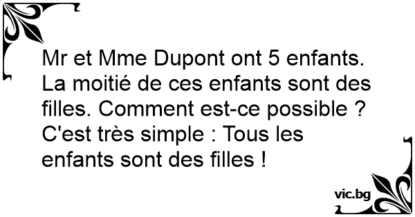 Mr et Mme Dupont ont 5 enfants. La moitié de ces enfants sont des filles. Comment est-ce possible ?