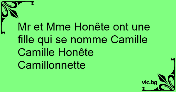 Mr et Mme Honête ont une fille qui se nomme Camille