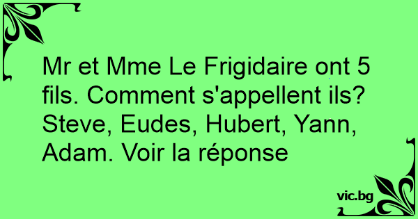 Mr et Mme Le Frigidaire ont 5 fils. Comment s'appellent ils?