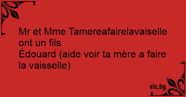 Mr et Mme Tamereafairelavaiselle ont un fils