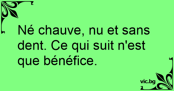 Né chauve, nu et sans dent. Ce qui suit n'est que bénéfice.