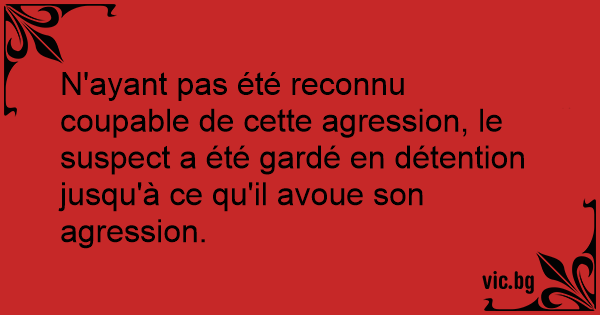 N'ayant pas été reconnu coupable de cette agression, le suspect a été gardé en détention jusqu'à ce qu'il avoue son agression.