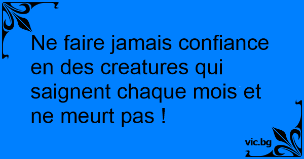 Ne faire jamais confiance en des creatures qui saignent chaque mois et ne meurt pas !